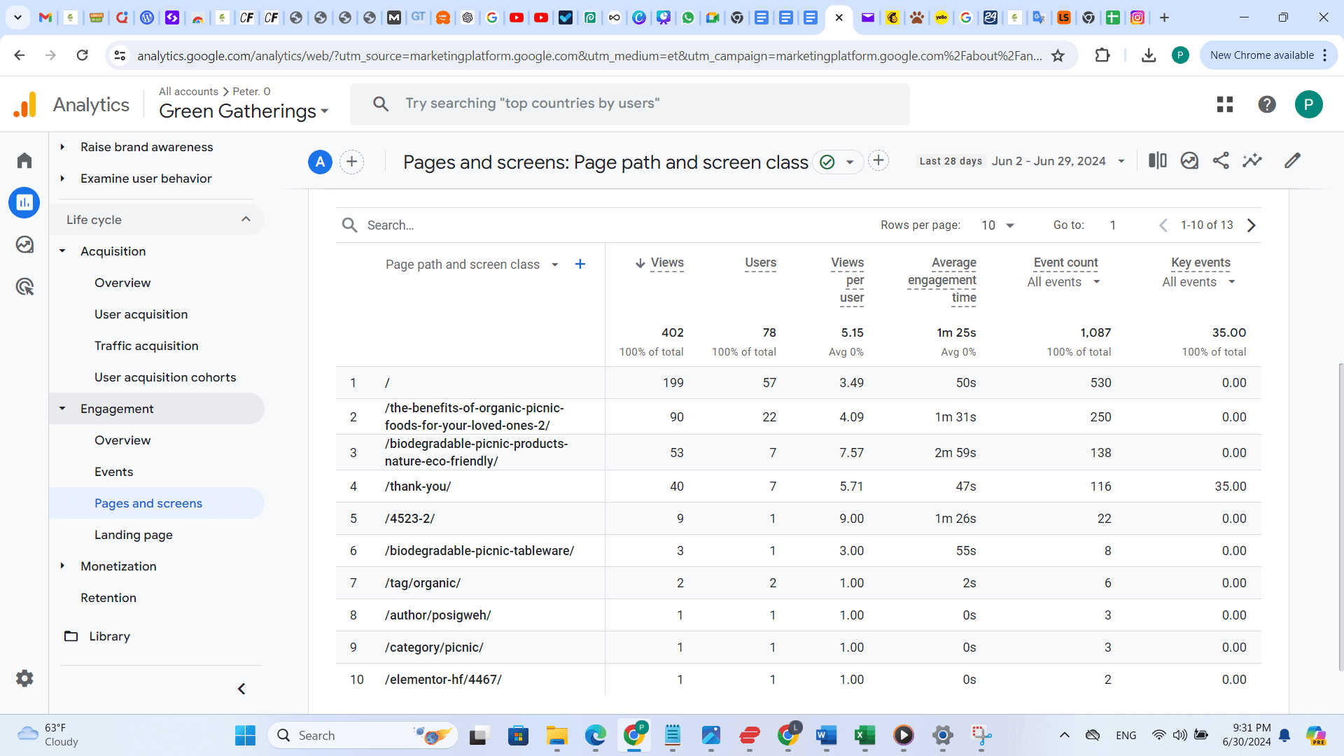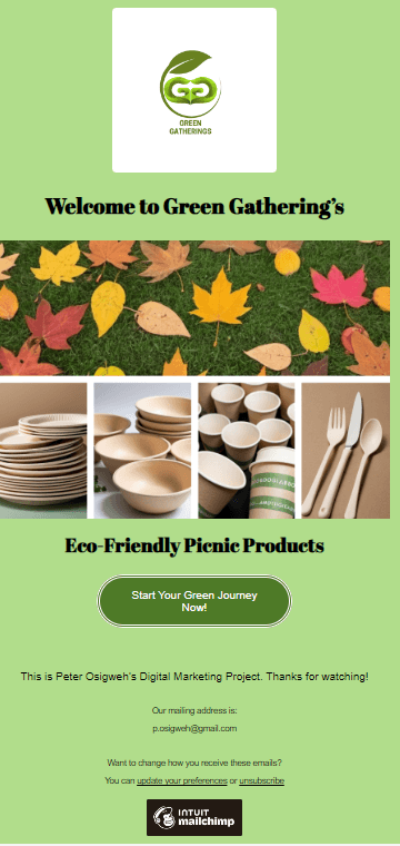 Ich arbeitete mit Green Gatherings, einem in Berlin ansässigen Startup, das sich der Nachhaltigkeit verschrieben hat, zusammen, um ihre Produktlinie für biologisch abbaubares Picknickzubehör auf den Markt zu bringen. Mein Ziel war es, eine digitale Marketingstrategie mit einem begrenzten Budget umzusetzen, die die Zielgruppe über sechs Monate effektiv anspricht. Die Strategie umfasste die Erstellung eines Blogbeitrags, die Gestaltung einer Produkt-Landingpage und die Entwicklung von Lead-Magneten wie E-Mail-Kursen und Newslettern, um Engagement und Conversions zu fördern.